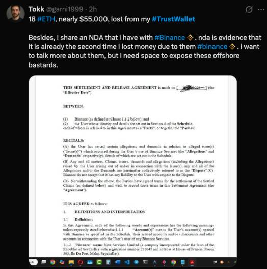 Another user reported a loss of 18 ETH, valued at close to $55,000 at the time. That user said they had previously signed a non-disclosure agreement with Binance and suggested the incident was not an isolated experience.